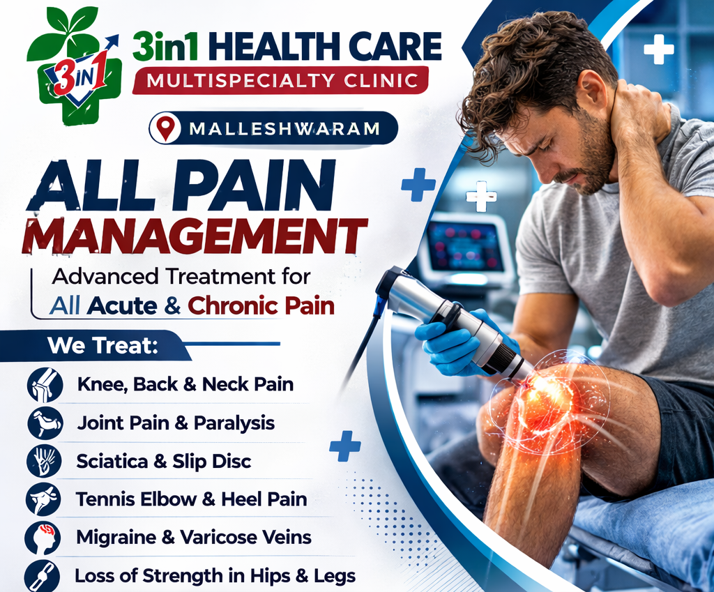 Comprehensive Pain Management Treatment in Malleshwaram – Advanced Care at 3in1 Health Care Multispecialty Clinic Pain can affect